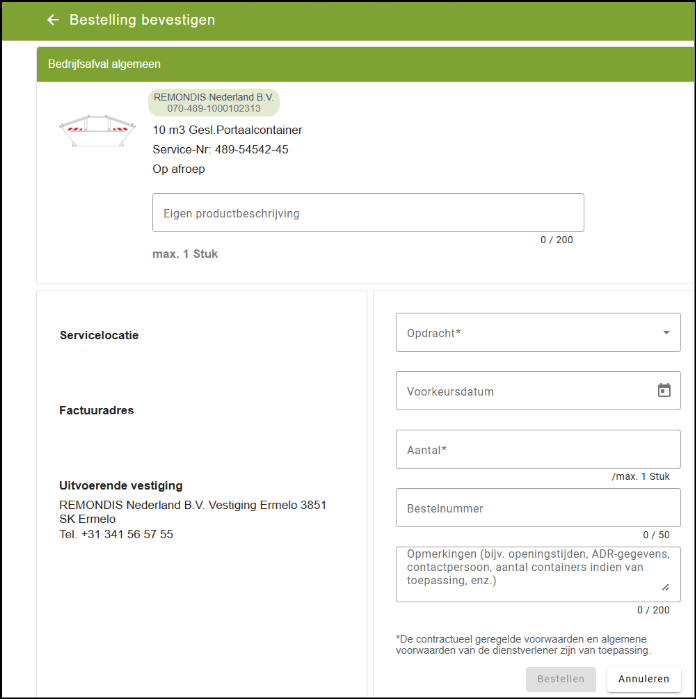 Een functie die echt meerwaarde biedt, is online bestellen via het klantportaal. Bestaande klanten kunnen alles handig en zonder papier regelen – van het plaatsen van de order tot het downloaden van de factuur. En nog steeds kunt u gedetailleerde informatie bij de order geven: in het berichtenveld plaatst u opmerkingen of speciale wensen. Ook kunt u een voorkeursdatum opgeven, die via het portaal direct wordt bevestigd. Is de voorkeursdatum niet beschikbaar, dan krijgt u in het in het portaal een voorstel voor een ander moment.